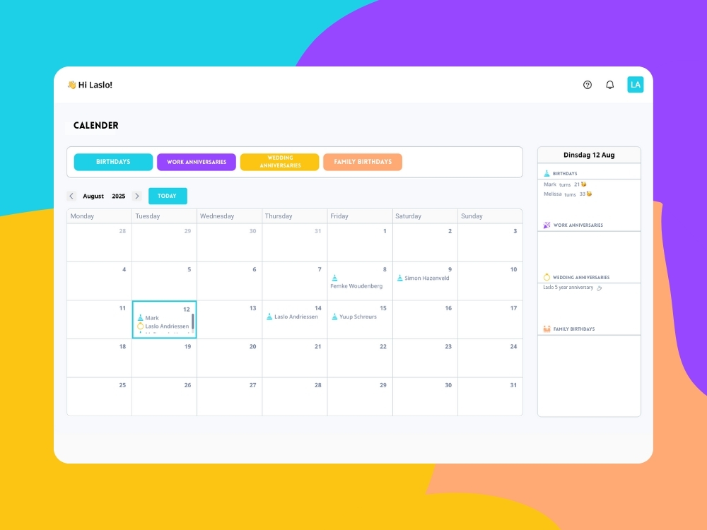 Haployee's online kalender zorgt ervoor dat je op tijd bent, ook als je collega plots een pup verwelkomt.